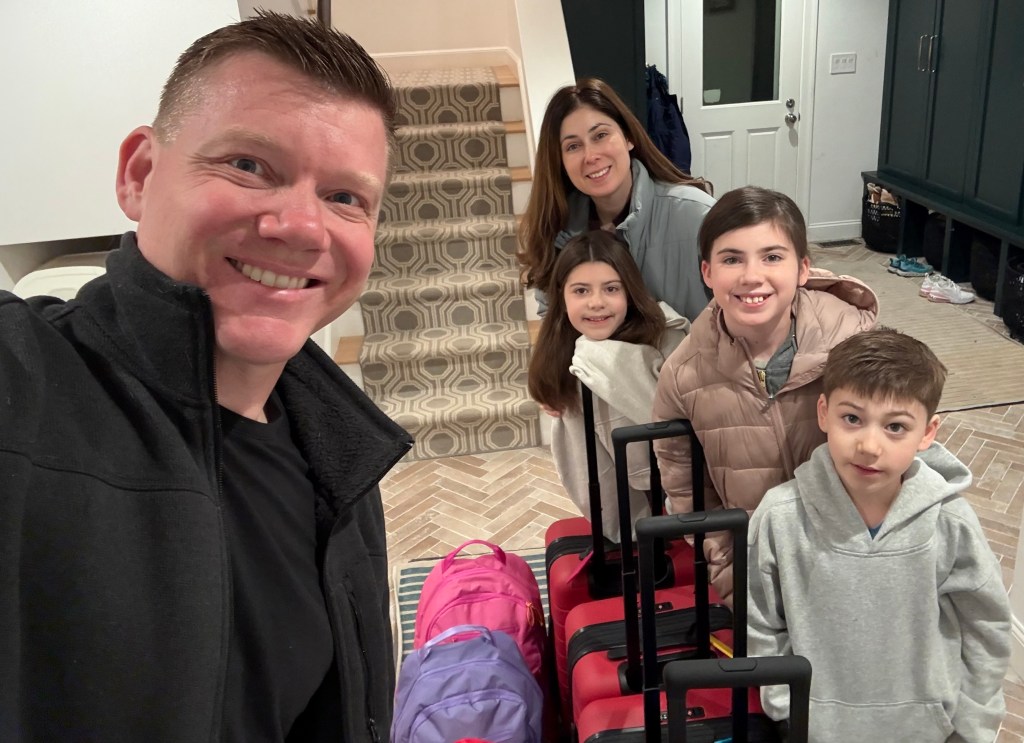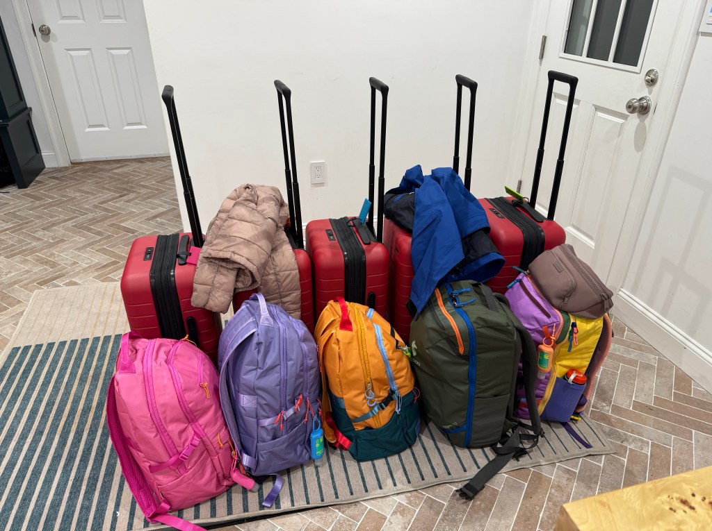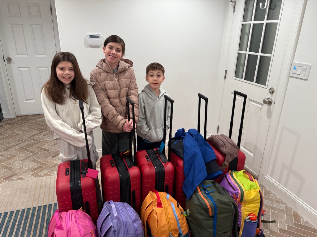 Everyone did great on the ~13 hour flight. Peyton says she watched 7 movies. Morgan and Owen did mix of movies and sleeping.