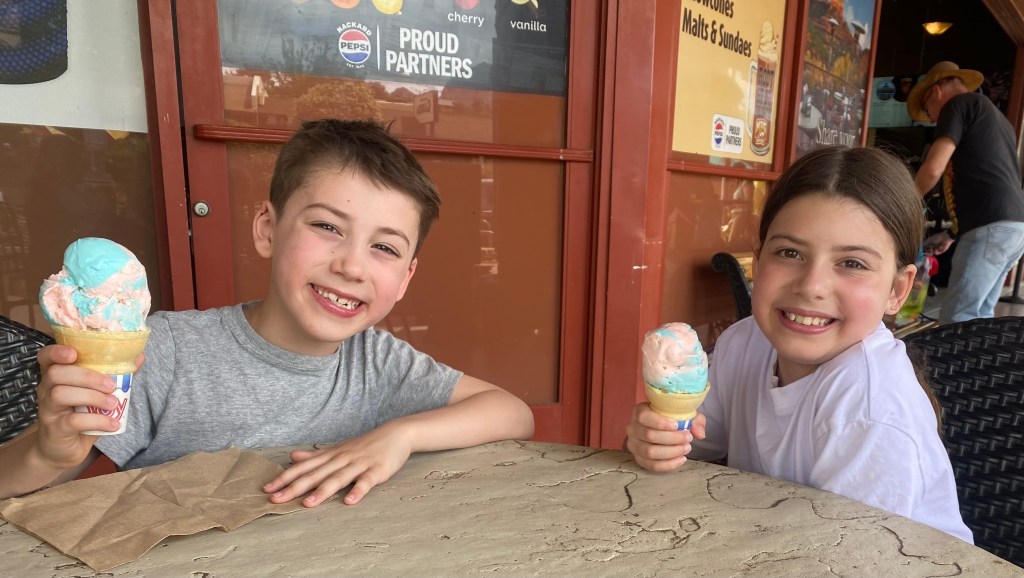 After lunch, Jordans, Elliot, Justin, Natacha, and Peyton went on hike to Devil’s Bridge. Natacha was very nervous when Justin and Peyton went out on the bridge. Meanwhile, Morgan and Owen hung out with Oma and Nonno and got ice cream.