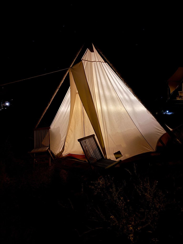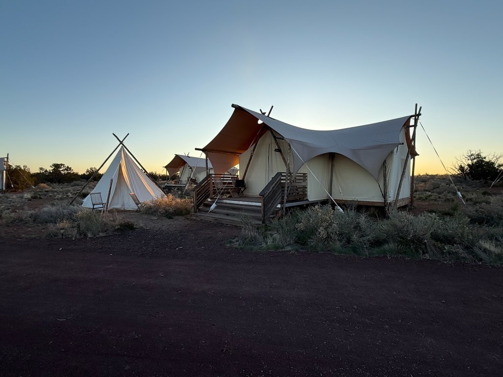 Then we drove on the our glamping hotel south of Grand Canyon. It was super cool spot. Really fun vibe and we get to try out “camping”. Kids got their own small tent and successfully made it through the cold desert night together.