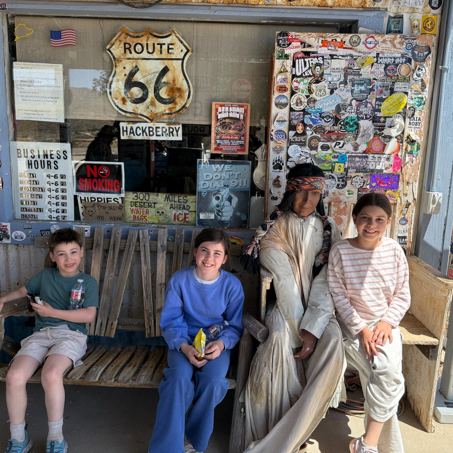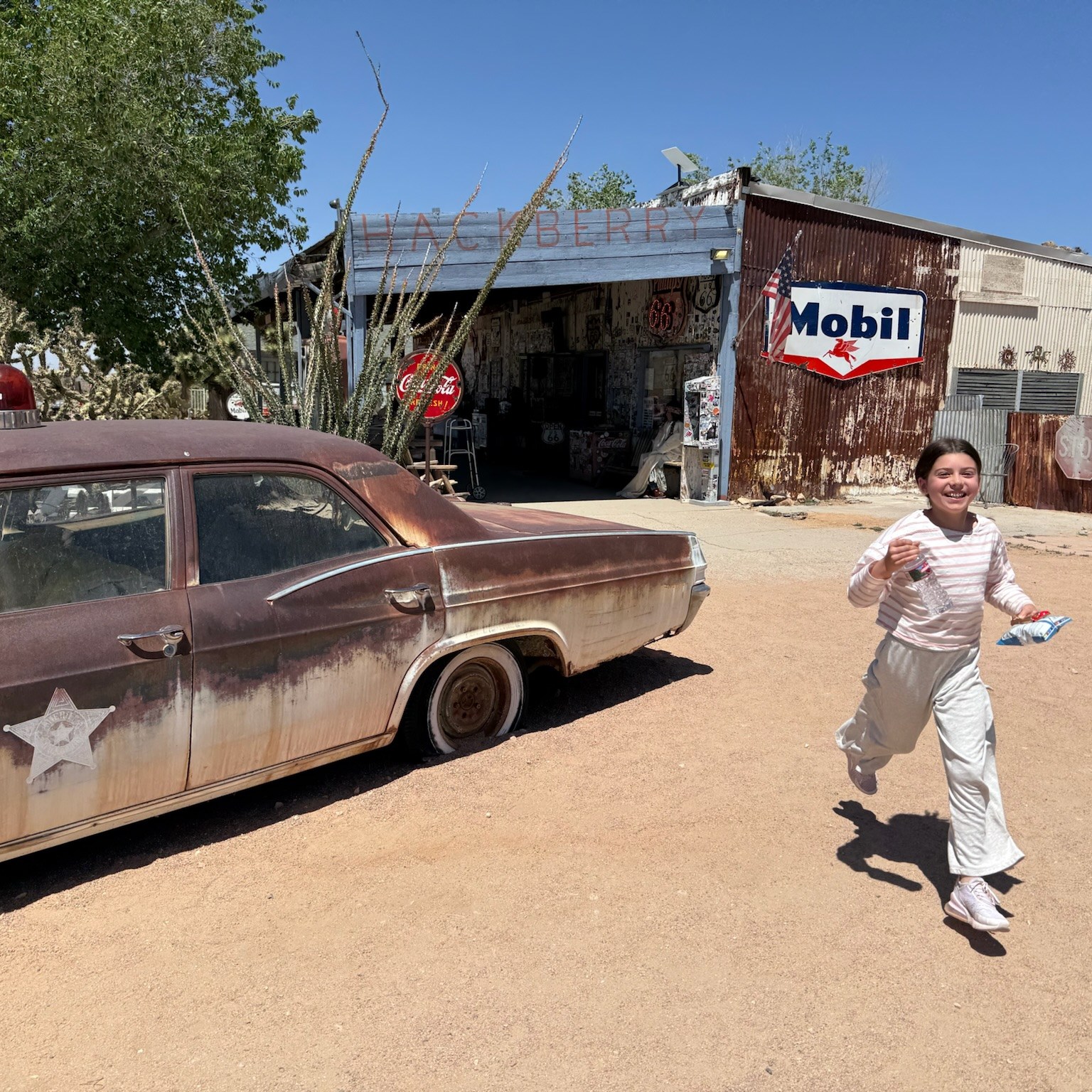The kids got to play with friends again in the morning. We took Route 66 to Las Vegas. Along the way we saw some come cool towns, some abandoned towns, and lots of long trains.