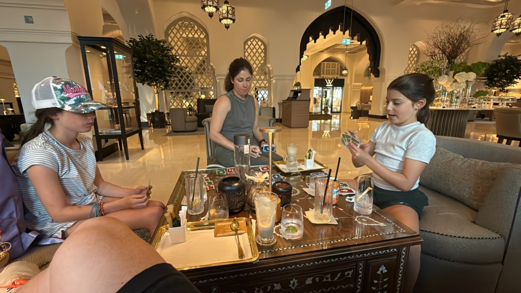 Our final stop was the Louvre Abu Dhabi. Natacha and Peyton were especially taken with the exhibits. Justin appreciated the experience, while Morgan and Owen mostly entertained each other—and were very thankful for the air conditioning on yet another scorching day.