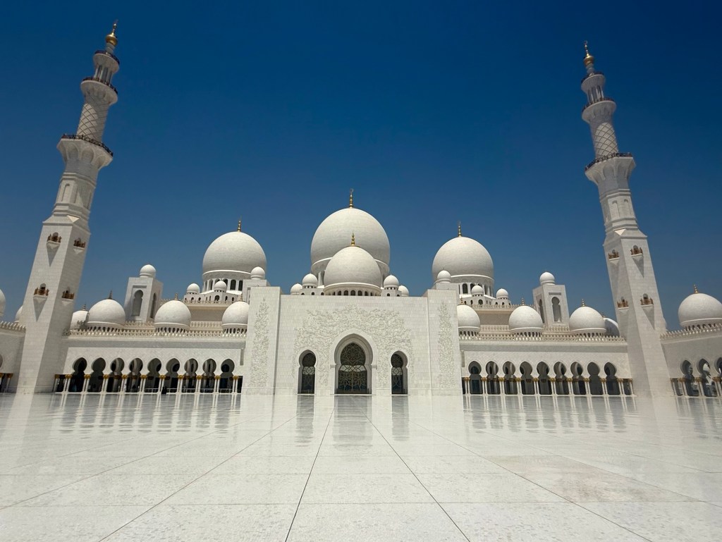 Our first stop was the Sheikh Zayed Grand Mosque. Made entirely of white marble, it was stunning both inside and out. It had the grandeur and serenity of an ancient religious site, it was completed in the 2000s, complete with air conditioning and even a mall beneath it. The scale and detail were truly impressive.