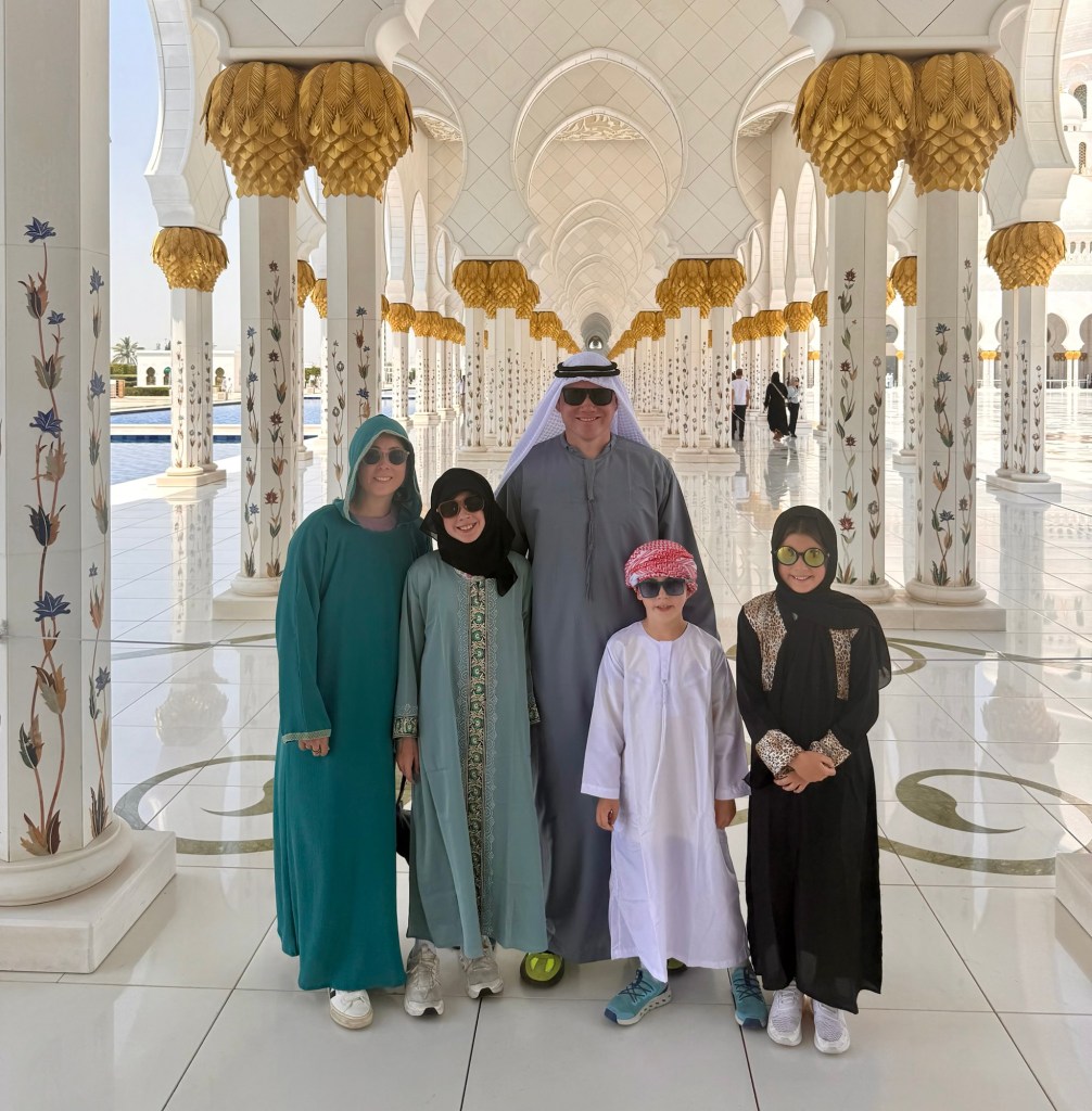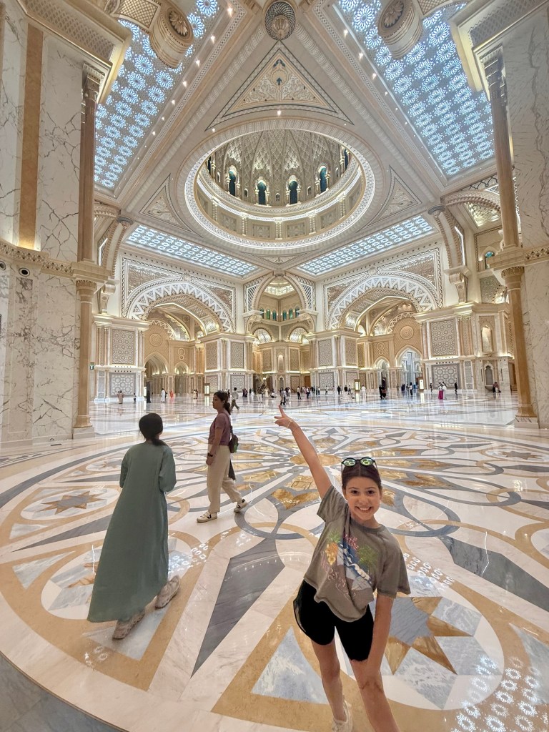 Walking around the mall and reflecting on our time here, the UAE is around 90% expats—and you definitely feel it as you walk around. A mix of languages can be heard at any given time. Aside from the intense heat, both cities feel like a particularly clean, modern global city. Nearly everything has been built in the last 20 years, and it shows. The architecture in both Abu Dhabi and Dubai is striking—most buildings feature some kind of creative design twist, making the skyline constantly interesting. After experiencing this, most U.S. cities come across as more utilitarian and a bit dated by comparison. And after touring the palace and mosque today, it’s hard not to feel that even our most beautiful government and religious buildings in the U.S.—while historic and meaningful—just don’t compare to this level of grandeur.