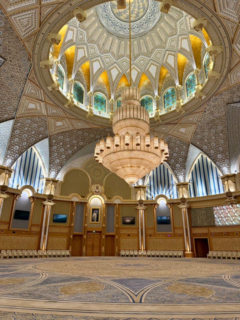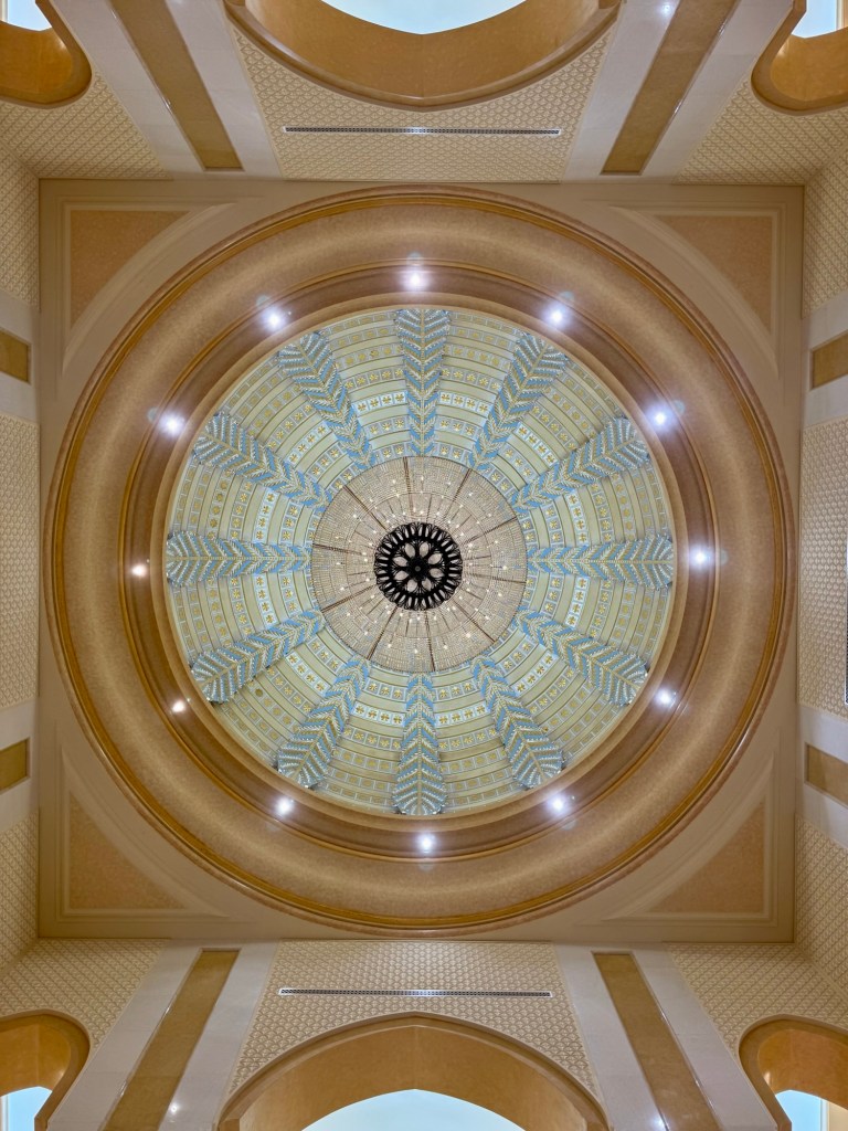 Next, we visited the Presidential Palace. On the way, we drove down the street where many members of the royal family—including the ruler of the UAE—reside. The current Presidential Palace, used for official government functions, was built between 2010 and 2017. Like the mosque, it showcased what’s possible when you combine unlimited resources with modern engineering. The interior in particular was jaw-droppingly ornate.